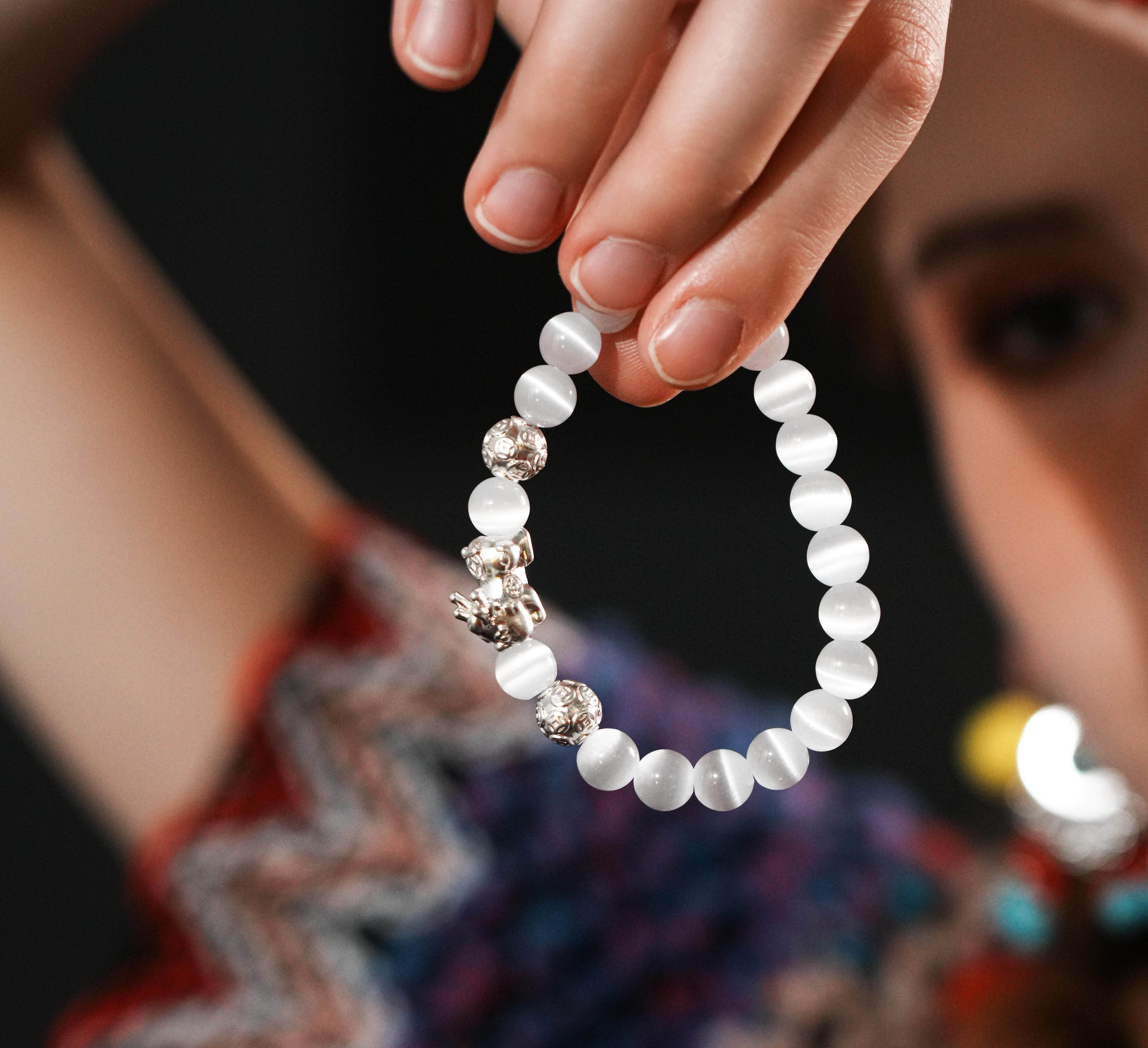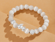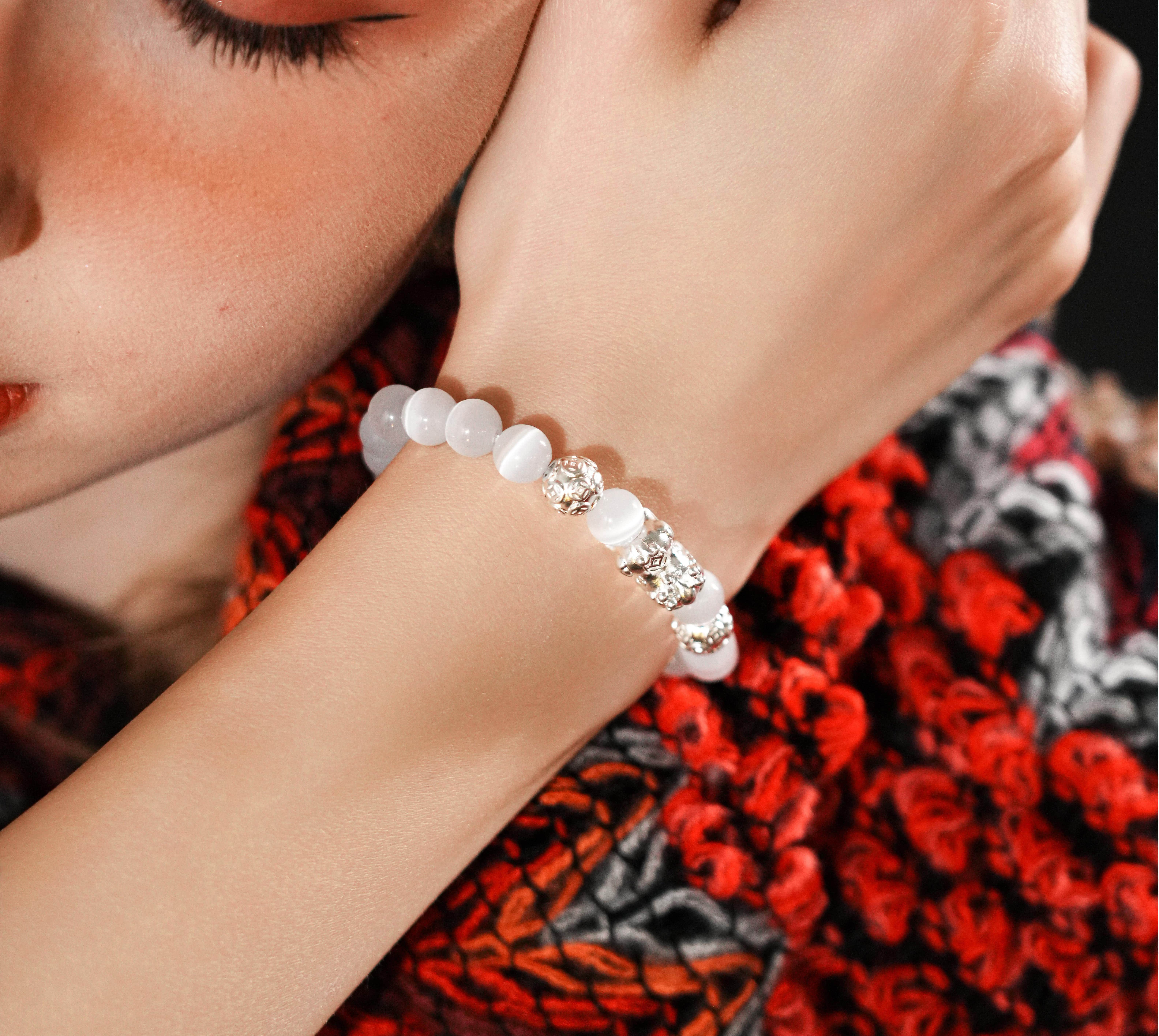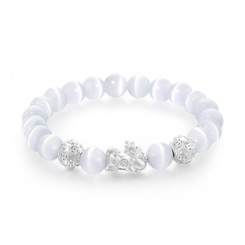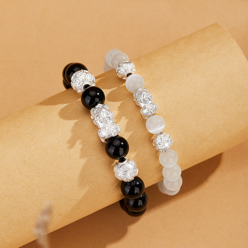 In Feng Shui, Pixiu is a legendary creature renowned for its loyalty. It recognizes its master and follows only one person throughout its life, just like the unwavering love between you and your partner. Wearing these bracelets not only symbolizes the loyalty and commitment in your relationship but also, according to Feng Shui beliefs, attracts wealth and guards your love. The contrast between the white cat's eye stone bracelet and the black obsidian bracelet makes them a perfect match for couples, expressing your unique bond.