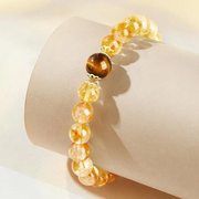 Elevate your style and energy with our exquisite Gold-plated S925 Silver Rutilated Quartz Tiger Eye Bracelet. Rutilated quartz, a remarkable natural crystal, is renowned for its ability to amplify positive energy, enhance mental clarity, and fuel manifestation efforts. Tiger eye, with its captivating appearance, is a stone of courage, confidence, and protection, also excelling in grounding and energy balancing. The sleek S925 silver accents not only add an elegant touch but ensure lasting durability. Whether you're chasing personal growth, seeking to boost vitality, or embracing the auspiciousness of feng shui for good luck, this bracelet is your perfect companion on the journey.