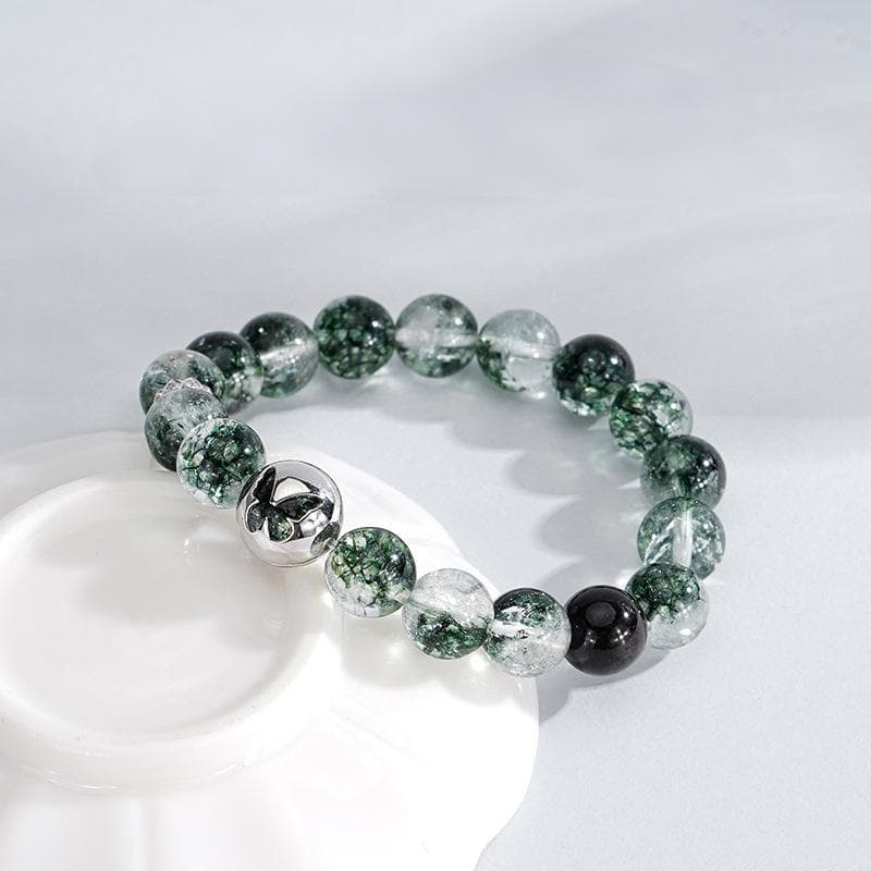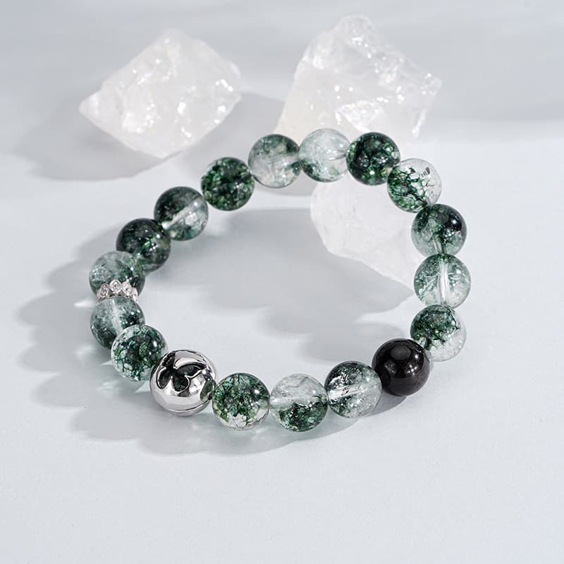 Elevate your aura and attract abundance with this handcrafted bracelet, merging the wealth-drawing energy of Green Phantom Crystal, the purity of S925 sterling silver, and the protective properties of silver obsidian. Designed for feng shui harmony, it’s a talisman for success, clarity, and positive transformation.