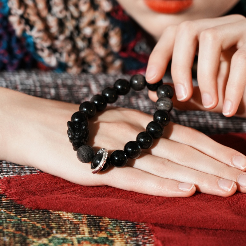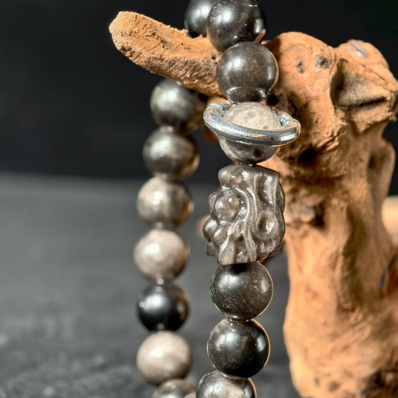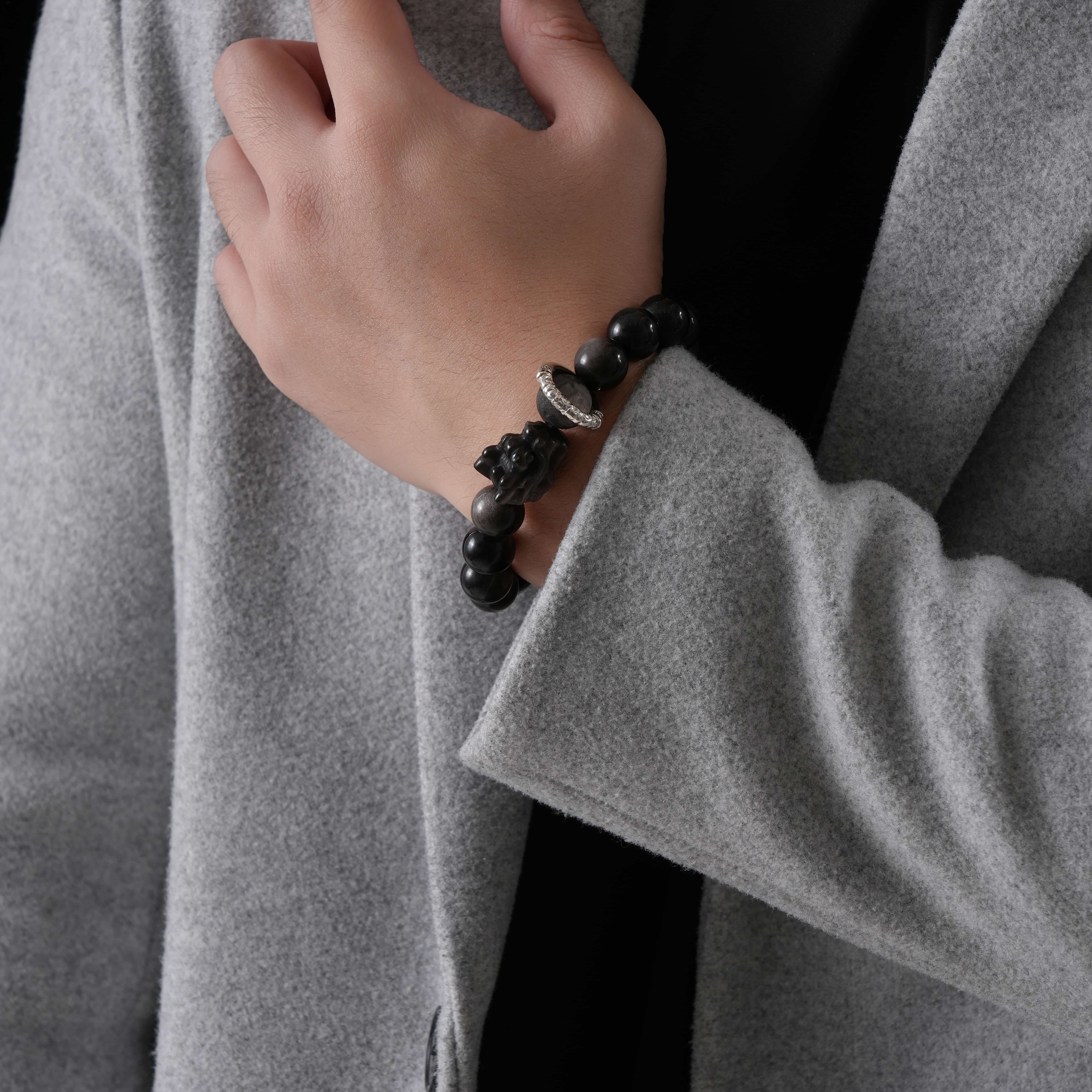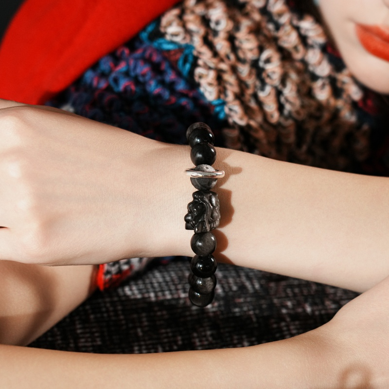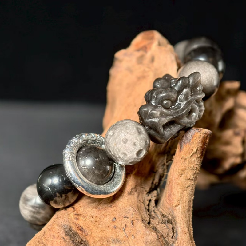 This handcrafted bracelet merges the metaphysical power of natural Silver Obsidian with the auspicious symbolism of a dragon head—a design rooted in ancient Feng Shui wisdom to elevate your energy, repel negativity, and attract good fortune.