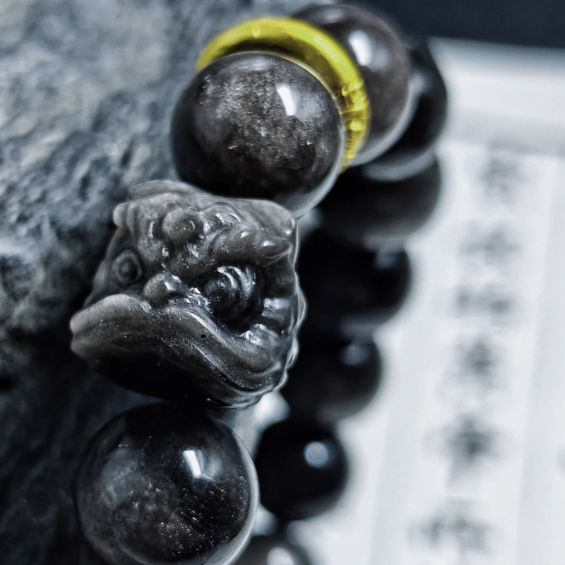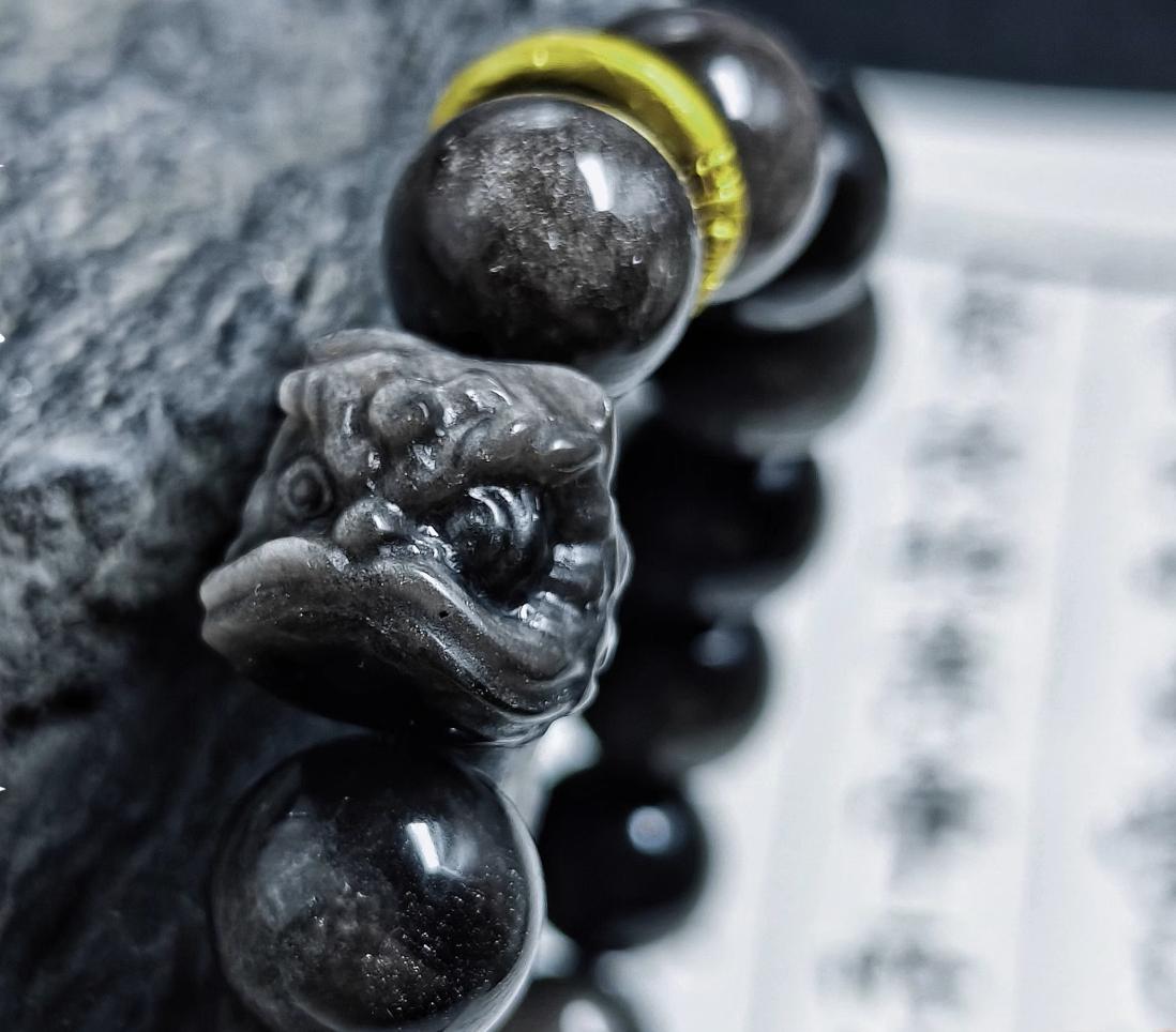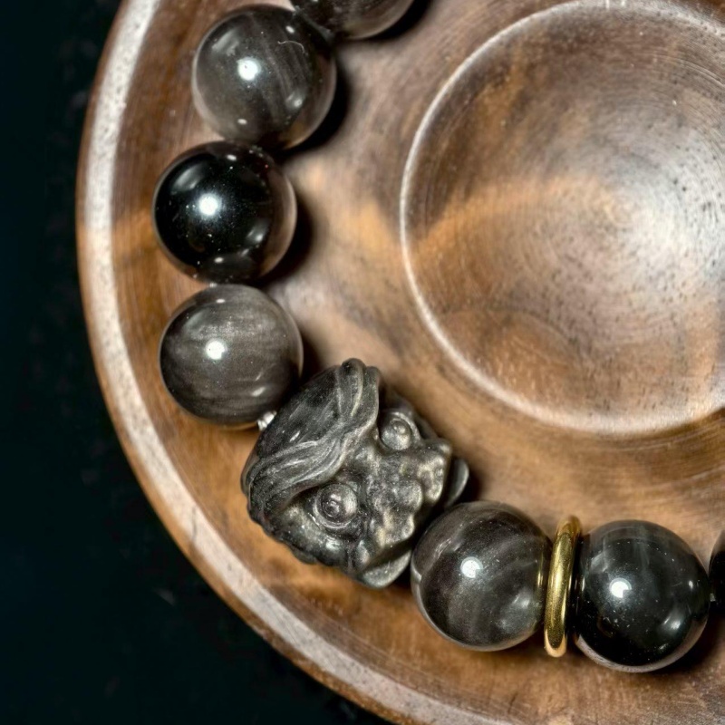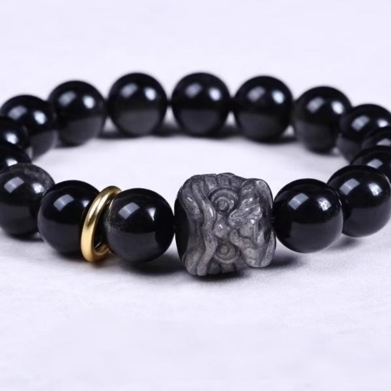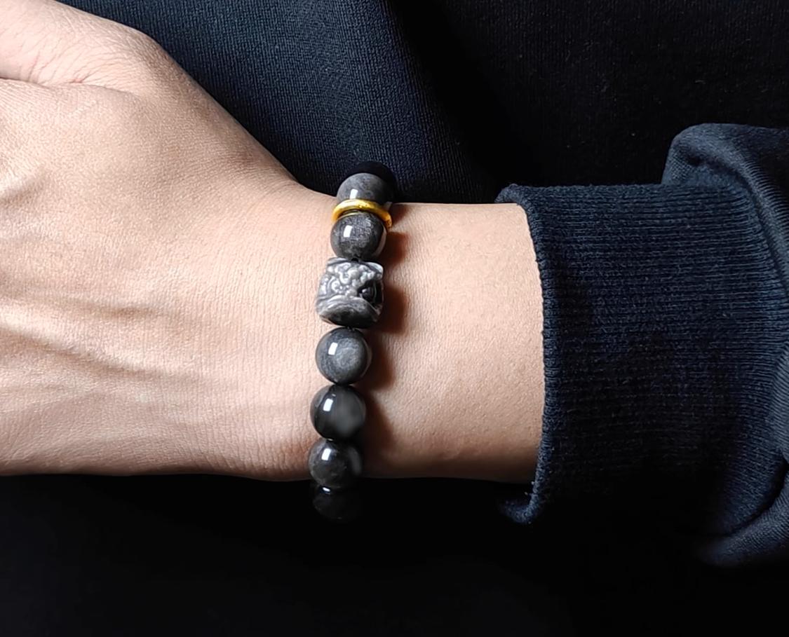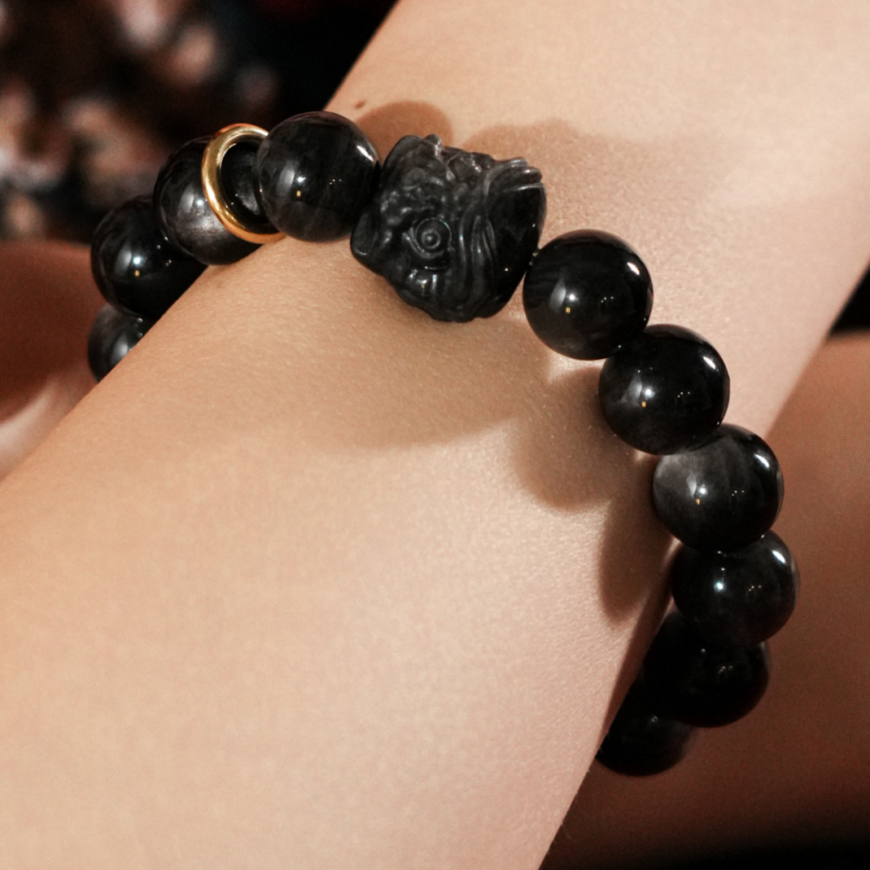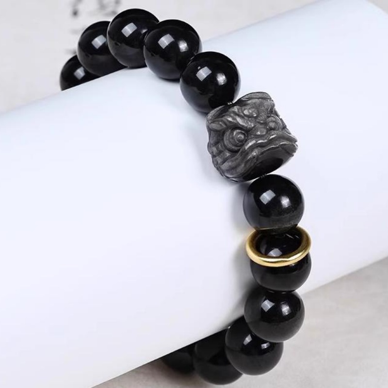 Our Obsidian Bracelet blends ancient wisdom with modern style, unlocking positive energy. Silver/Gold Sheen Obsidian options, handcrafted for comfort and durability. Copper ring complements and lion charm, adding elegant depth to any look.