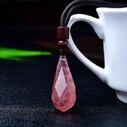 Water Drop Faceted Crystal Pendant - Natural Amethyst, Smoky Quartz, Strawberry Quartz, Green Fluorite & Clear Quartz for Energy Healing & Feng Shui Balance