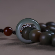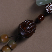 Accent Elements: Intricately carved wooden Buddha’s Hand charm with tassel (for spiritual protection, wisdom, and detail); symbolic patterned beads (for auspicious energy flow); and smooth-toned accent beads (for energetic balance and visual cohesion).