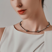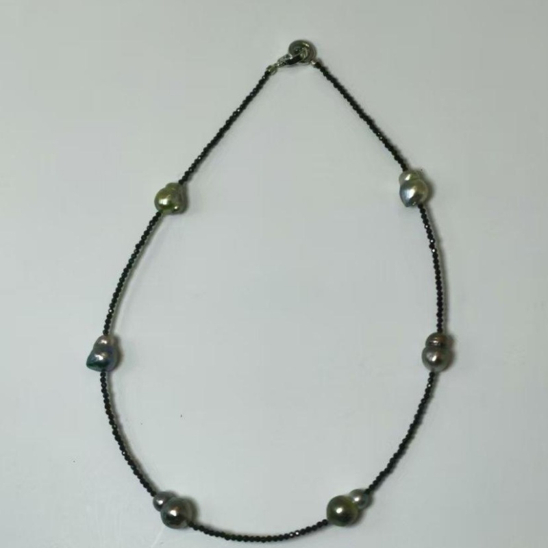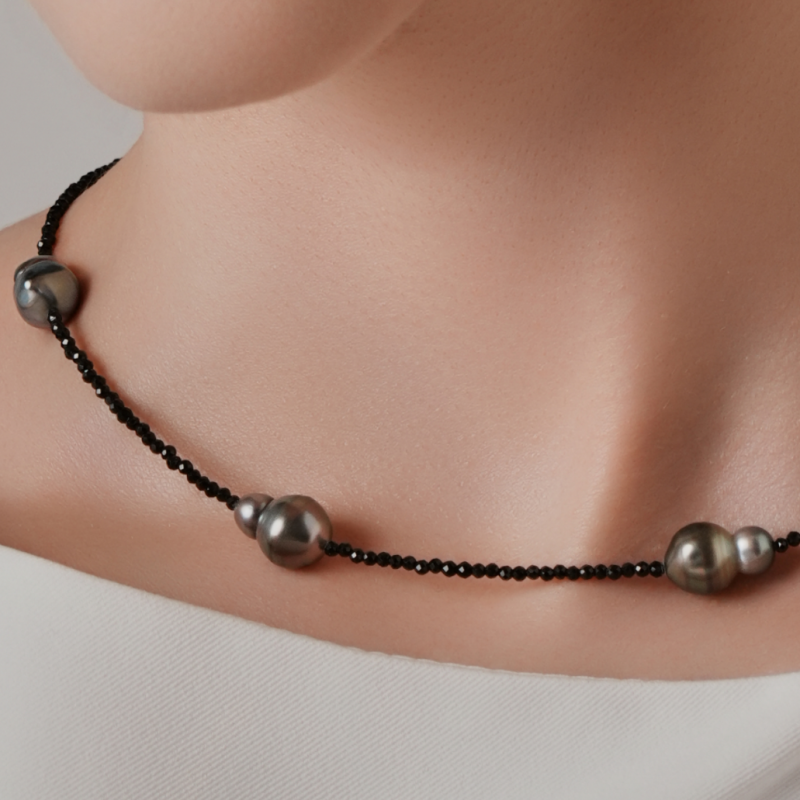 Materials: Tahitian black pearls, black spinel beads, 925 sterling silver (clasp).