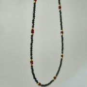 Zen Artisan Handmade Black Spinel & Ruby Rough Stone Necklace | 18K Gold Beads & Clasp, Natural Gem Energy for Vitality, Courage & Calm