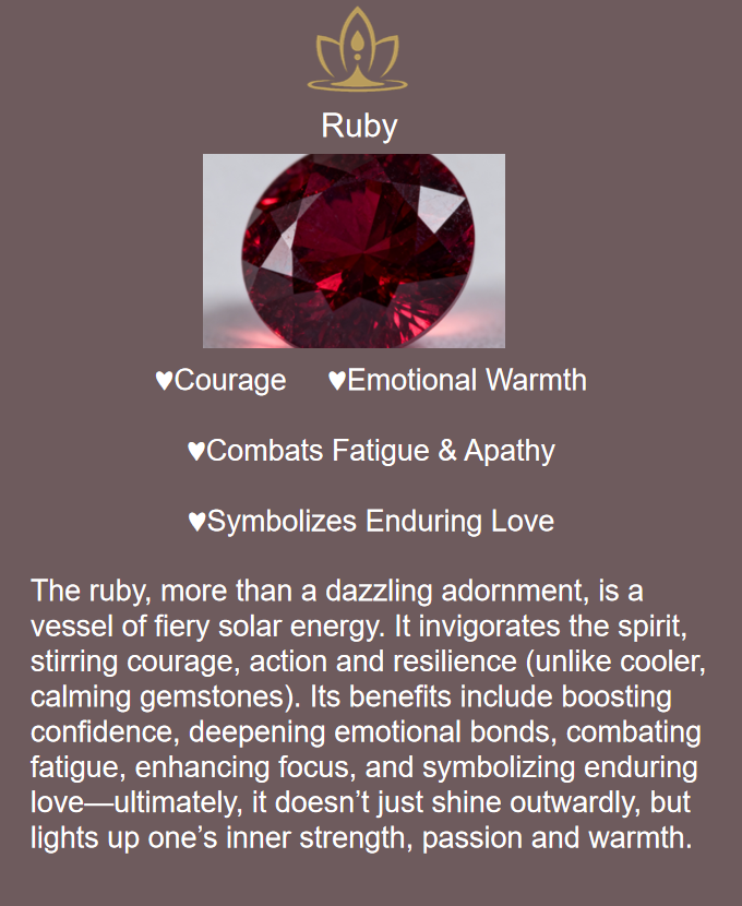 ♥Energetically, black spinel acts as a shield against negative energies, promoting emotional stability and grounding—offsetting the ruby’s vibrancy with calm, aligning with Zen Artisan’s focus on tranquility.