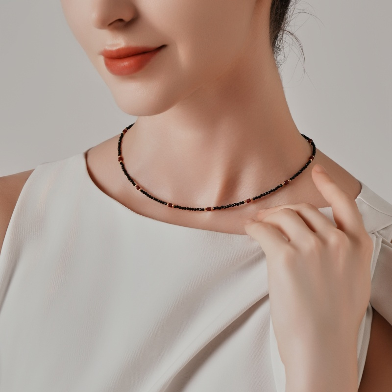 Black Spinel: Complementing the ruby’s fire is black spinel, a gemstone celebrated for its jet-black shine and exceptional durability (perfect for daily wear). Each spinel bead features a smooth, polished finish that creates a beautiful contrast with the ruby’s rough texture, balancing the design’s visual rhythm.