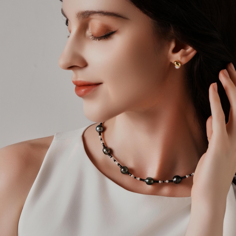 At the center of this exclusive design lies a 10-11mm sea Tahitian keshi pearl—a rare, nucleated-free gem sourced from the warm waters of French Polynesia. What makes it extraordinary? Its organic, irregular contours (no two are identical), a rich deep gray or charcoal base, and mesmerizing iridescent overtones that shift to peacock green or silver in light—each hue a product of nature’s unplanned artistry. Surrounding this focal pearl are delicate 3-4mm natural freshwater pearls, their soft creamy luster balancing the Tahitian keshi’s bold character. The design is further refined with glistening black spinels (for subtle contrast) and 925 silver plated with 18K gold spacers and a secure lobster clasp—finished with an anti-tarnish coating to preserve its elegance for years.